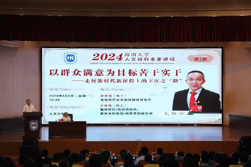 本站訊(記者 梁淑儀 通訊員 廖丹丹 戎蓉)4月8日晚,海南大學(xué)第二期人文社科名家講壇在田家炳樓副樓報(bào)告廳舉行,全國脫貧攻堅(jiān)楷模、重慶市巫山縣竹賢鄉(xiāng)下莊村黨支部書記毛相林作題為《以群眾滿意為目標(biāo)苦干實(shí)干——走好新時(shí)代新征程上的下莊之“路”》的主題報(bào)告。來自海甸校區(qū)、儋州校區(qū)、觀瀾湖校區(qū)、崖州灣科教園、城西基礎(chǔ)教學(xué)部的近1000名師生代表以線上線下相結(jié)合的方式聆聽報(bào)告。海南大學(xué)校長、中國科學(xué)院院士駱清銘,黨委常委和校領(lǐng)導(dǎo)張繼友、高佃恭、邱錫光、譚勇出席講壇。張繼友主持講壇。