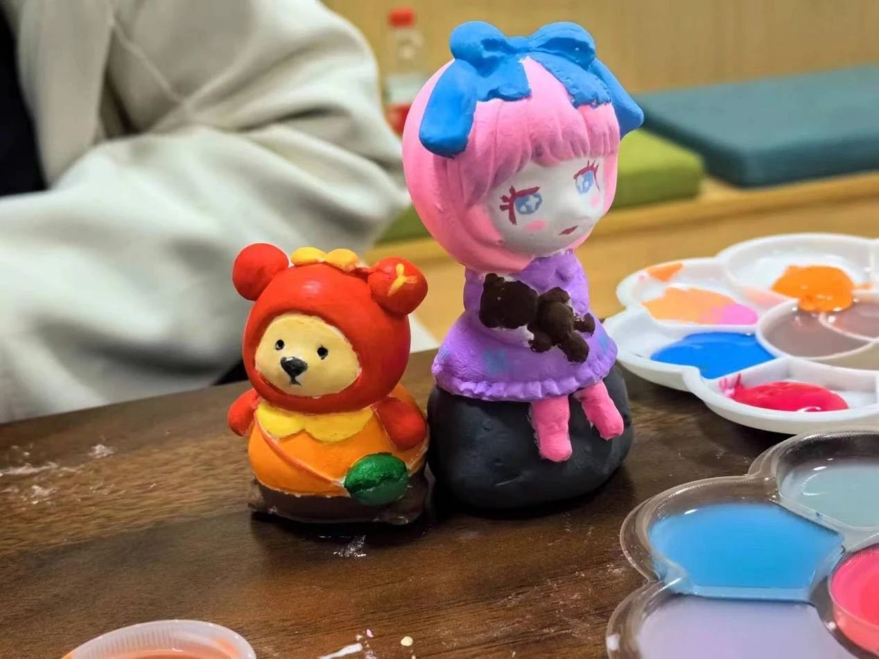 石膏彩繪是由同學們親自用畫筆和顏料,根據(jù)自己的構(gòu)思和想象,對石膏像白坯進行彩繪。活動過程中,大家相互協(xié)作,互幫互助,隨著彩繪石膏作品的逐漸成型,笑容也在同學們臉上愈變愈濃、愈變愈美,制作與創(chuàng)造的樂趣在活動室中洋溢,每一件作品都是大家心靈手巧、熱愛生活的表現(xiàn)。石膏彩繪完成后,大家分別對自己的作品進行了展示,并將自己彩繪的作品作為收藏的小禮物。在溫馨美好的氛圍中,本次活動圓滿結(jié)束。