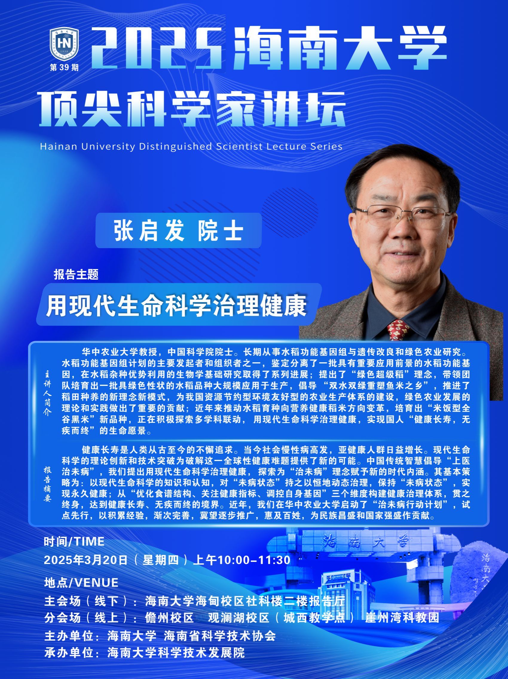 上一篇:2025海南大學頂尖科學家講壇丨大數(shù)據(jù)驅動的生命健康科學研究